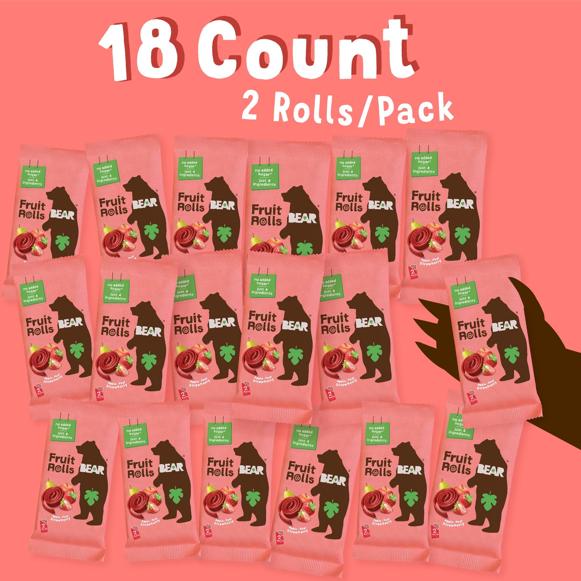 BEAR Real Fruit Snack Rolls - Gluten Free, Vegan, and Non-GMO 0.7 Ounce (Pack of 18)