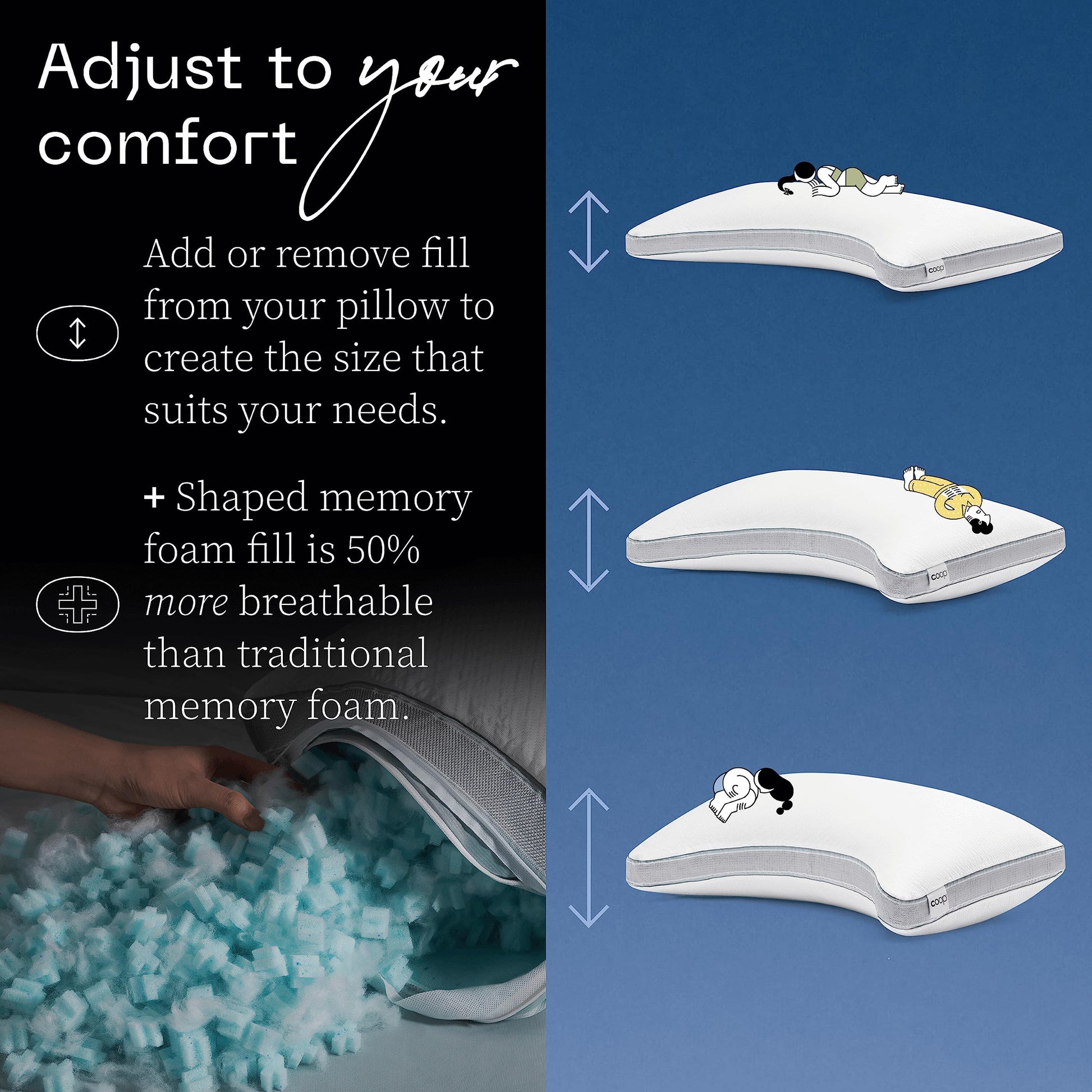 - You Sleep You: Be you with our adjustable cooling pillows for sleeping. Simply unzip the cover, add or remove stuffing to match your comfort level & get ready to sleep better! Personalize it the way you want it; each package comes with a 0.5 lb bag of fill. Cool+ also has 2 sides to choose from for a good night's sleep; the cushy cool side & the firm, supercooled pad side.