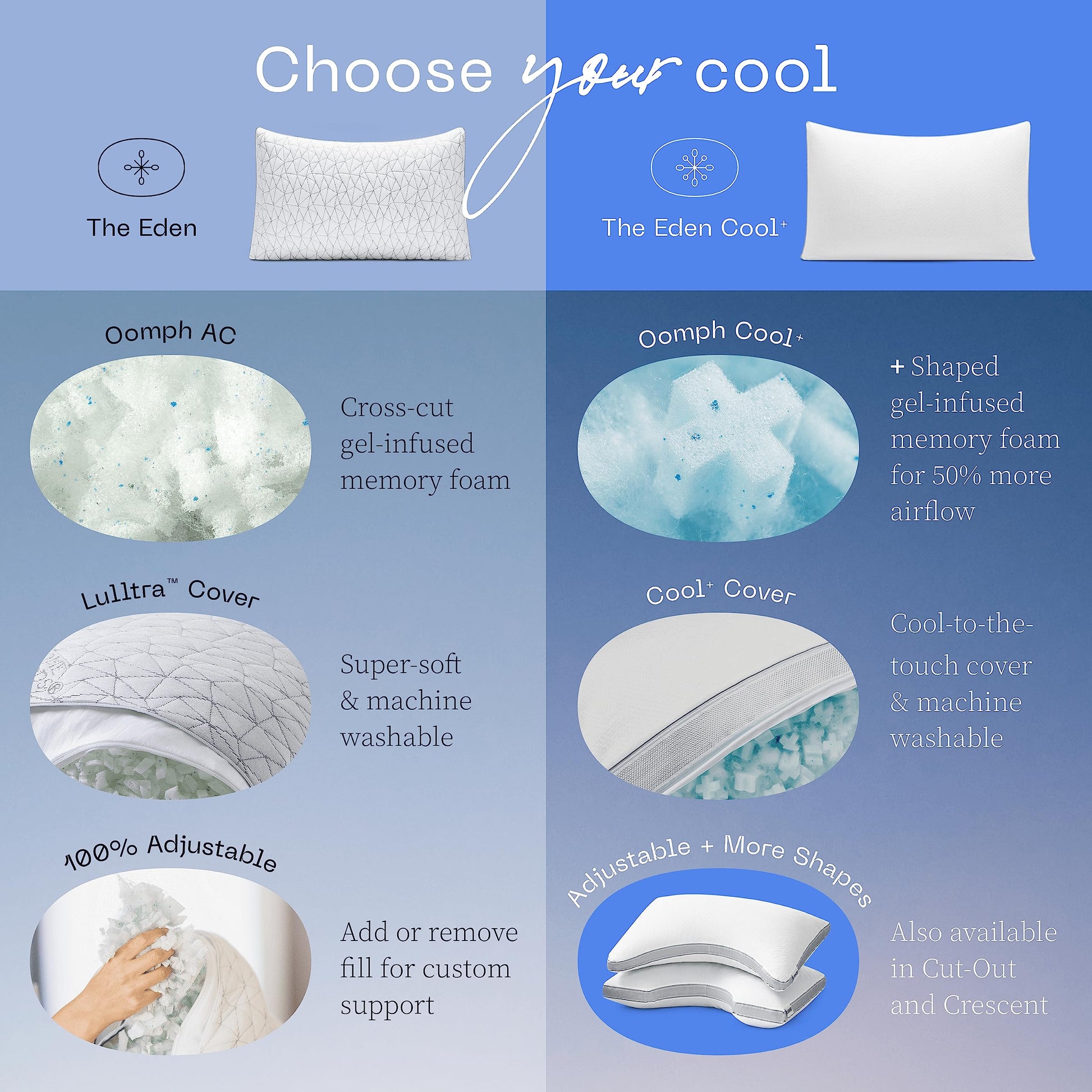 - Complete Cooling Technology: Inside, you get a gel-infused Oomph fill in plus shape for 50% more airflow. The memory foam & microfiber blend in this foam pillow dissipates excess heat for a peaceful slumber, free from overheating & moisture. On the outside, you get a heat-wicking liner & soft cool-touch cover to keep you calm & chill.