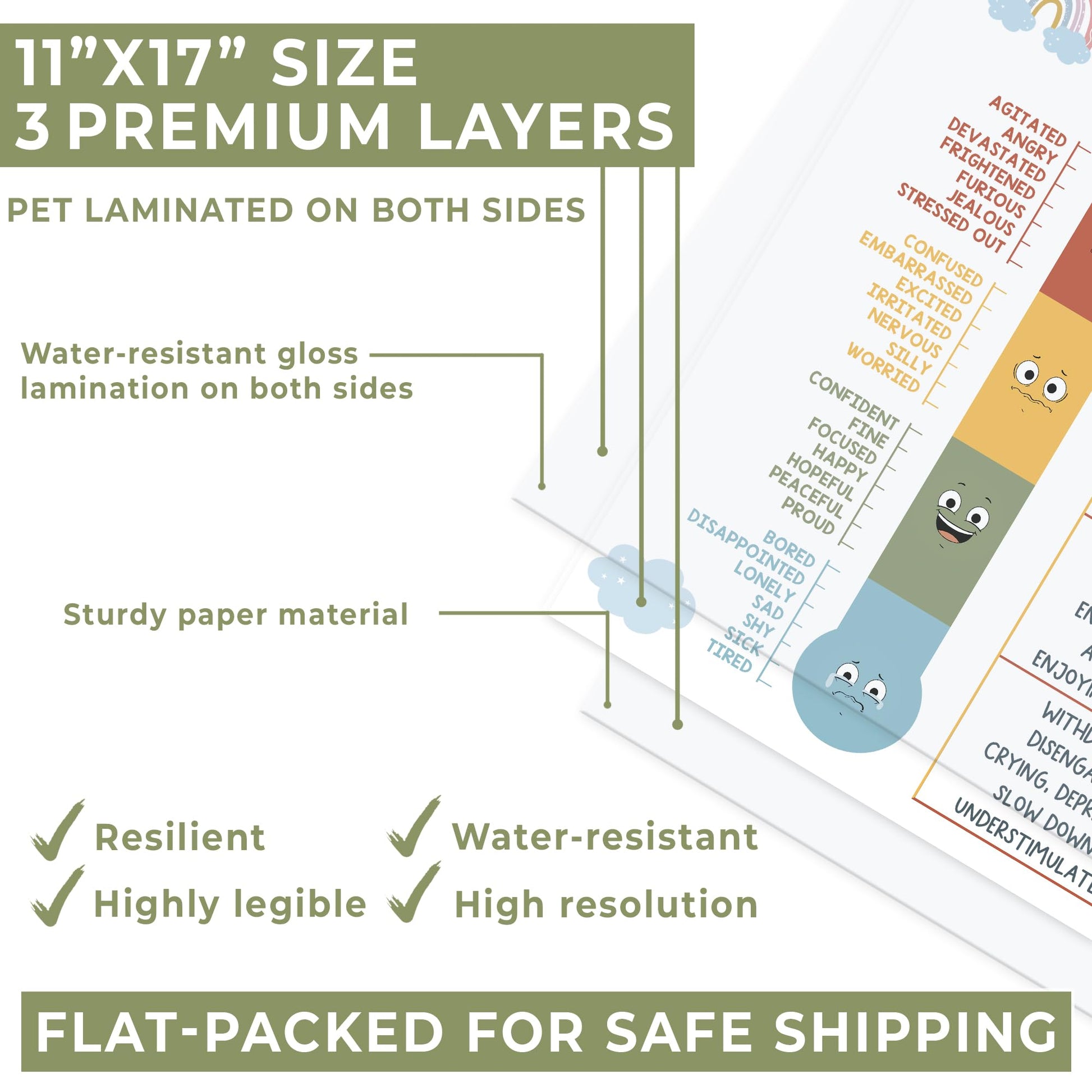 - SIZE & QUANTITY: 2 posters size 11x17" - double-sided laminated, thick and sturdy 250 GMS paper, waterproof, high resolution. Suitable for all uses such as teaching materials, classroom decoration, children's room decoration, classroom consulting room or school.