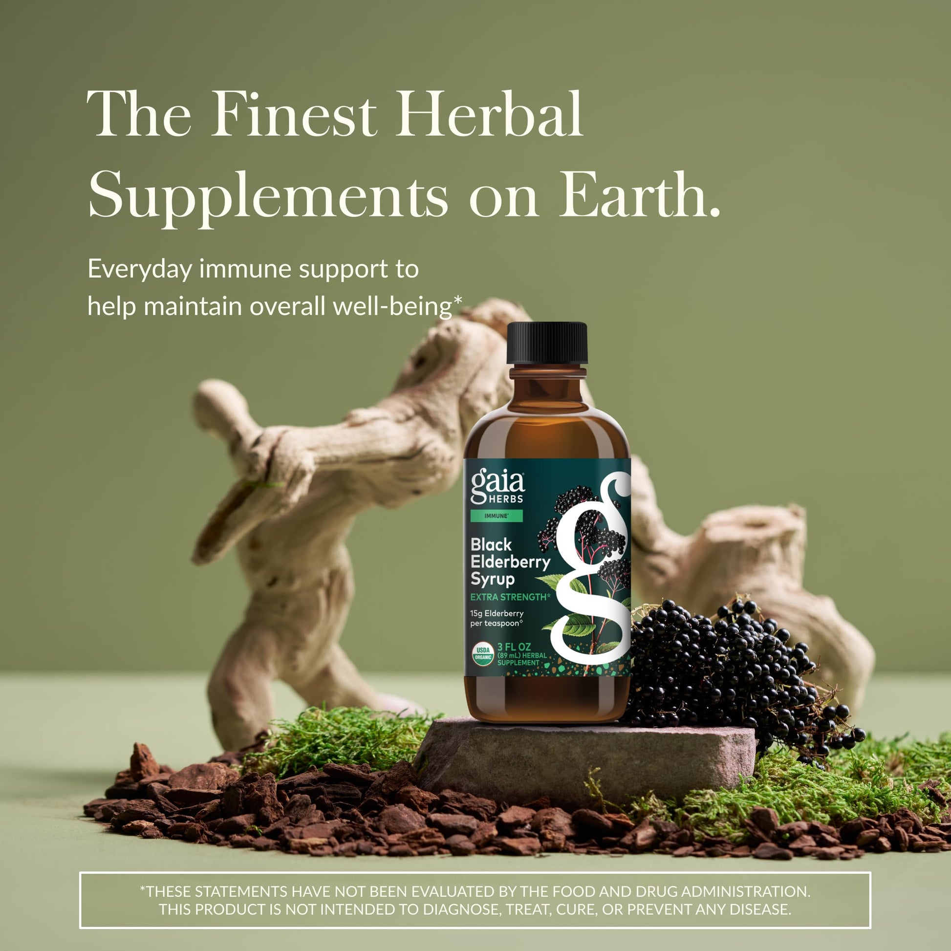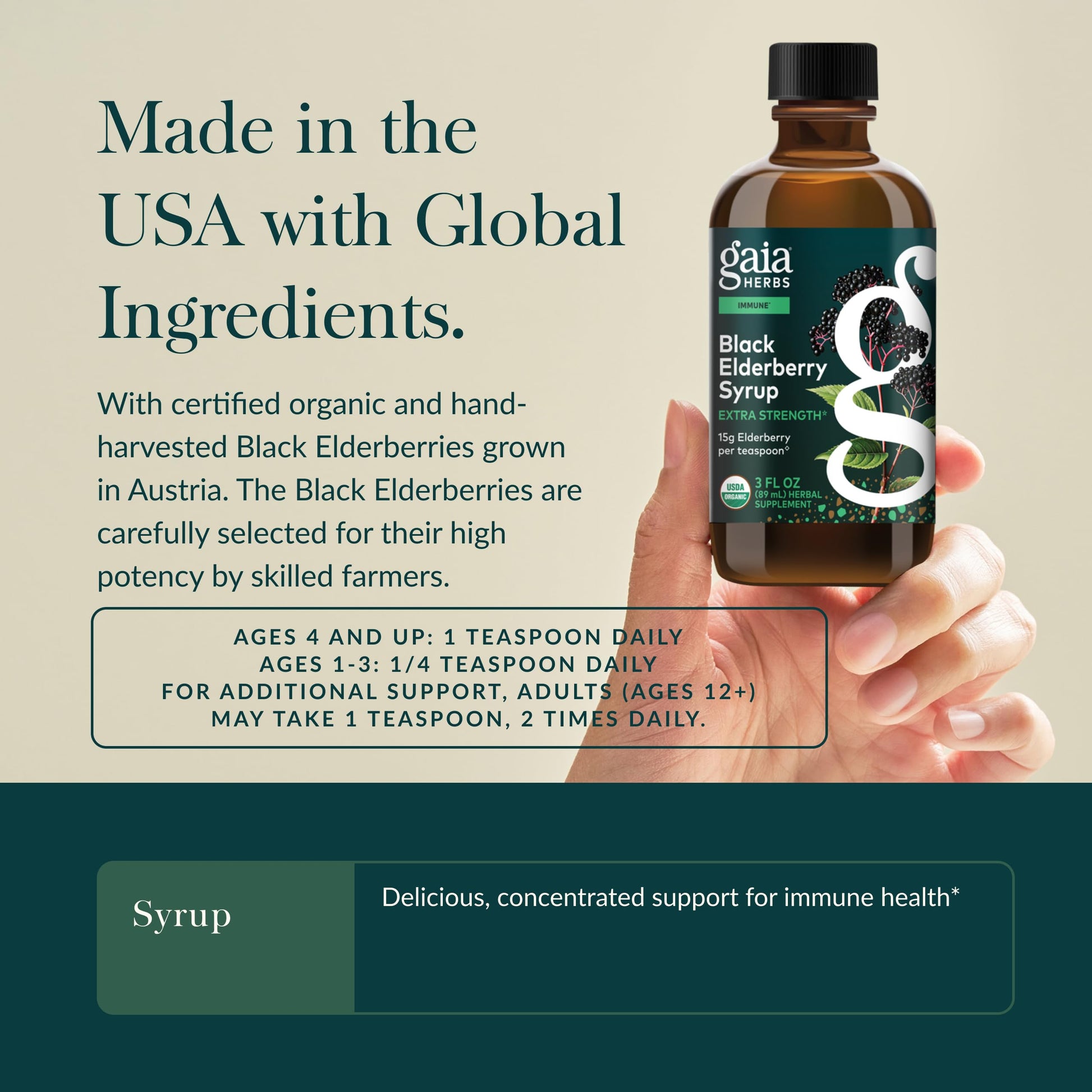 Gaia Herbs Black Elderberry(Sambucus Nigra) Syrup Extra Strength, 3 Fl Oz(18-Day Supply)